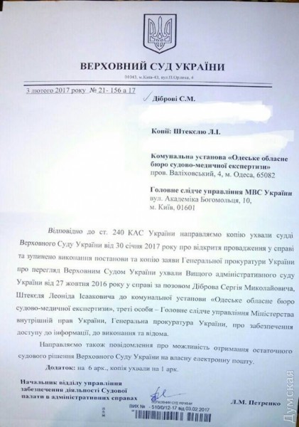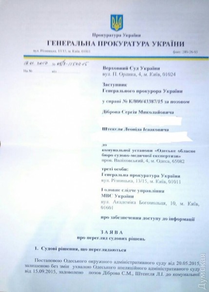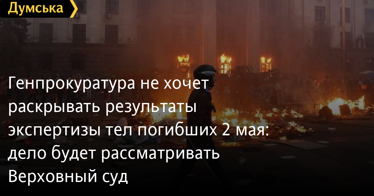 Генеральная прокуратура Украины обжаловала в Верховном суде решения трех админсудов — окружного, апелляционного и Высшего — по иску участников «Группы 2 мая» Леонида Штекеля и Сергея Диброва, которые требуют обнародовать копии заключений судебно-медицинских экспертов, исследовавших тела погибших в одесской трагедии 2014 года.