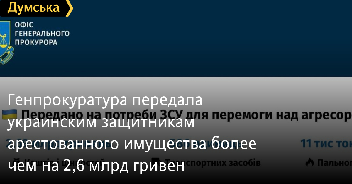 С начала войны Генпрокуратура передала на нужды украинских защитников средств и материальных ценностей на 2,69 млрд грн.