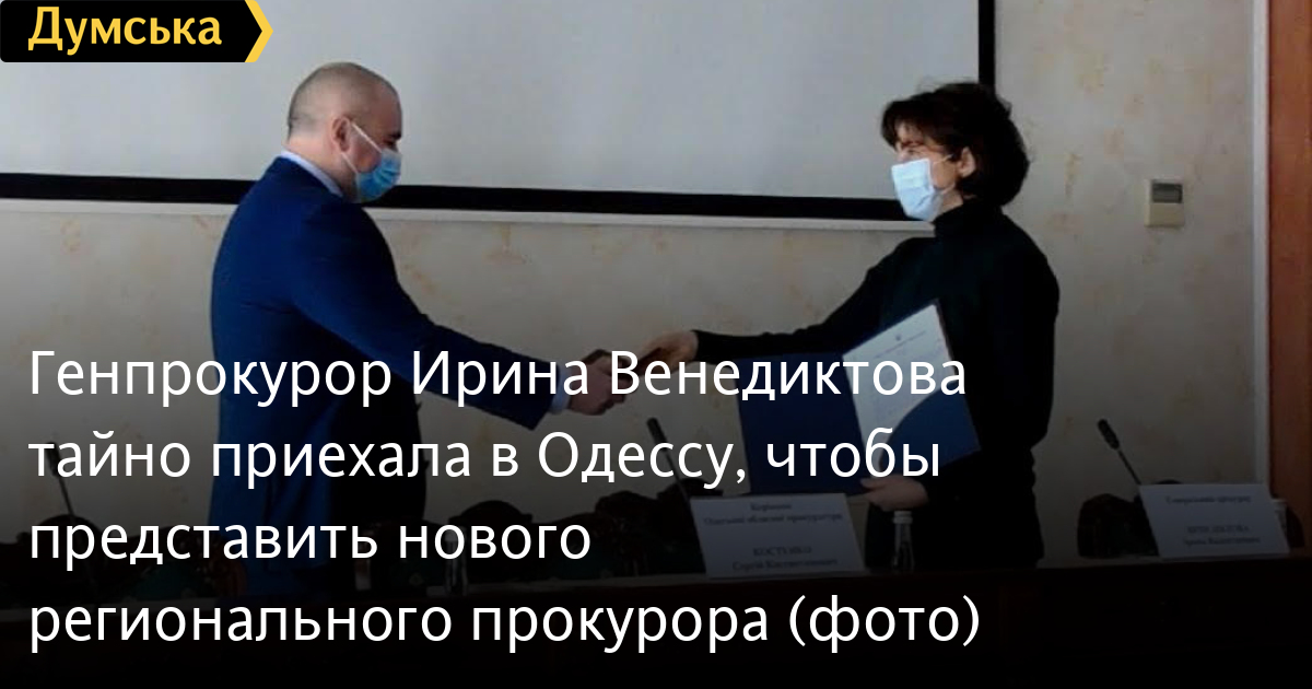 «Почти весь трудовой путь нового руководителя областной прокуратуры был связан с органами прокуратуры Одесской области, поэтому я надеюсь на эффективную и результативную работу на важнейших для региона направлениях. Прокуратура усилит координационную роль правоохранительной системы области. Но главная задача для каждого в нашем институте — работать на повышение доверия людей», — заявила Ирина Венедиктова.