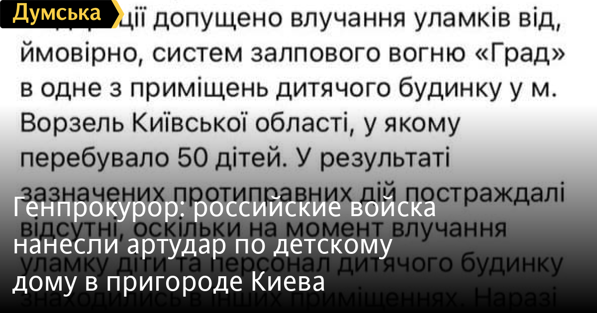 Российские войска нанесли артиллерийский удар по помещению детского дома в Ворзеле Киевской области.