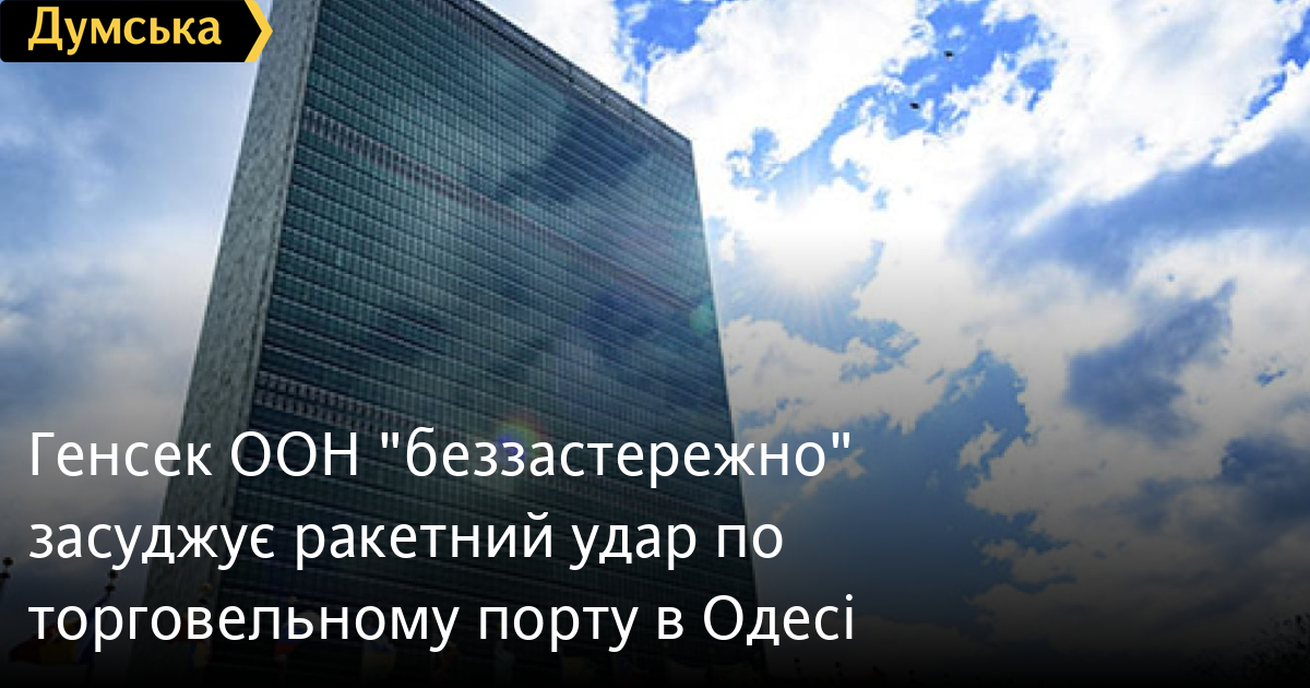 «Генеральний секретар беззастережно засуджує повідомлення про удари, завдані сьогодні в українському порту Одеси. Учора всі сторони взяли на себе чіткі зобов'язання на світовій арені щодо гарантування безпечного руху українського зерна та супутніх товарів на світові ринки. Ці продукти вкрай необхідні для подолання глобальної продовольчої кризи та полегшення страждань мільйонів нужденних людей у всьому світі», — йдеться в заяві заступника прессекретаря Генсека ООН.