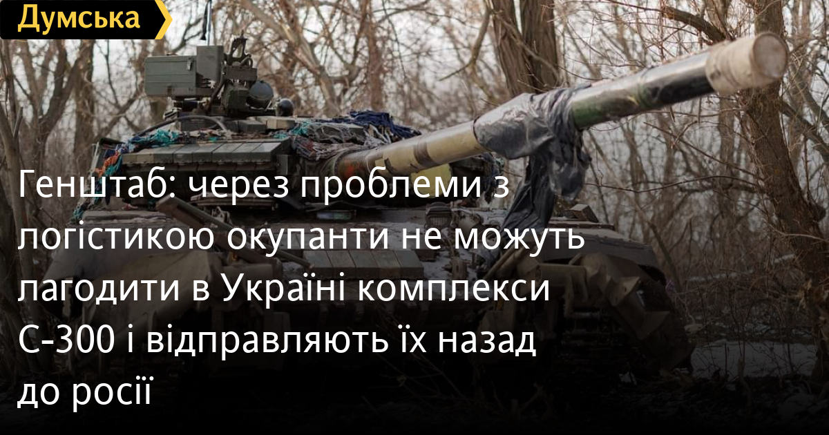 У Генеральному штабі Збройних сил України повідомили, що у ворога виходять з ладу модернізовані зенітно-ракетні комплекси С-300, які російські нацисти часто використовують для обстрілу наших міст. Через погану логістику вони не можуть доставити компоненти для ремонту ЗРК, тож установки часто доводиться відправляти на обслуговування назад у росію.
