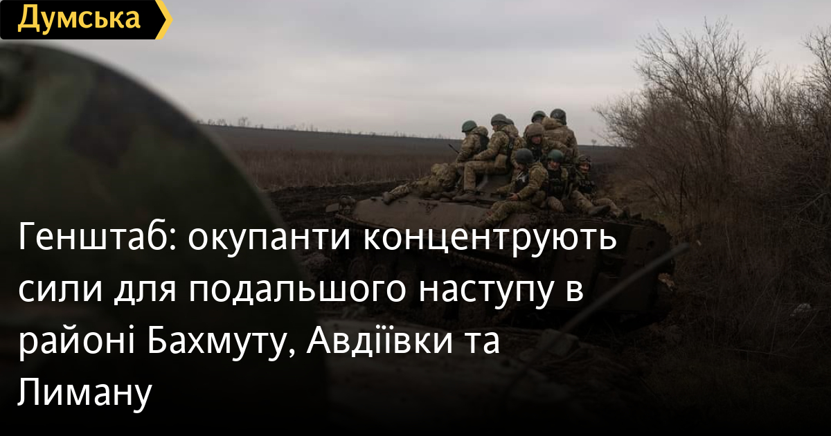 Генштаб: окупанти концентрують сили для подальшого наступу в районі Бахмуту, Авдіївки та ЛимануРосійські війська продовжують концентрувати зусилля для наступу на бахмутському, авдіївському та лиманському напрямках. У районі Куп'янська загарбники намагаються поліпшити своє тактичне становище, а на запорізькому та херсонському напрямках — обороняються. У Генштабі Збройних сил України повідомили, що 7 січня рашисти завдали одного авіаудару, сім разів вели вогонь із реактивних систем залпового вогню. Авіація Сил оборони України завдала ударів по 21 району зосередження ворога і три удари по його позиціях ППО. Наші артилеристи та ракетні підрозділи вразили чотири райони зосередження сил противника та два склади з боєприпасами. СМЕРТЬ РОСІЙСЬКИМ ОКУПАНТАМ! Помітили помилку? Виділяйте слова з помилкою та натискайте control-enter |