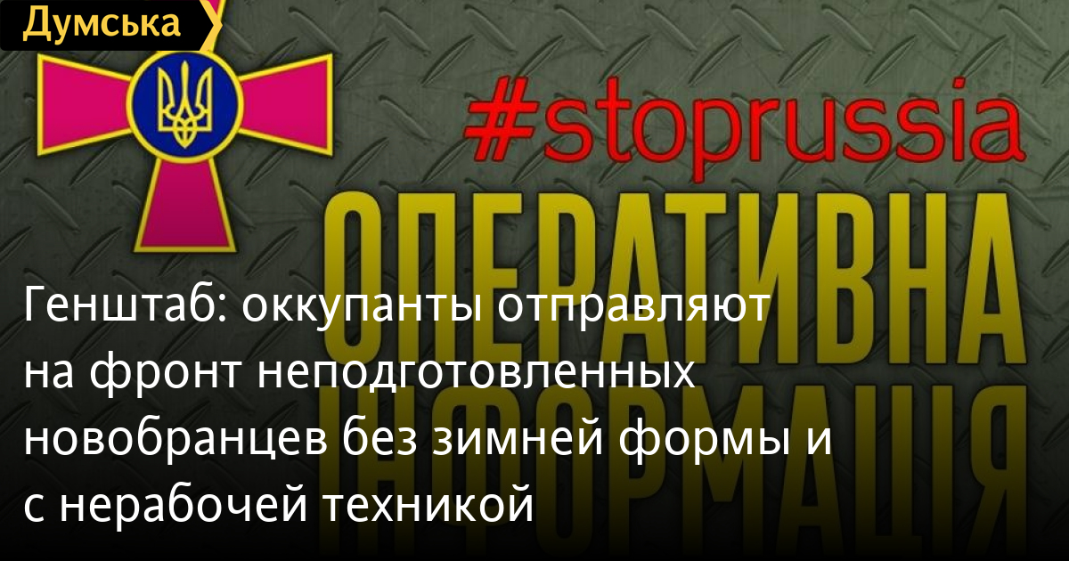 Генштаб: окупанти відправляють на фронт непідготовлених новобранців без зимової форми та з неробочою технікою