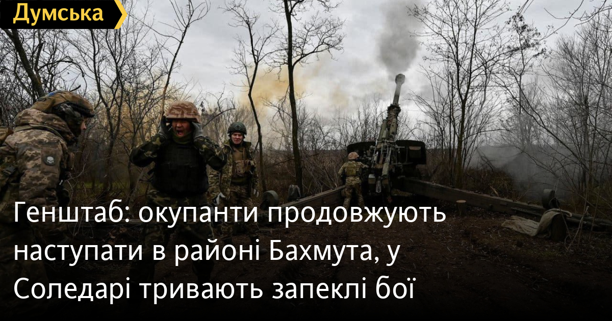 Російські нацисти продовжують концентрувати зусилля для захоплення Донецької області. Противник наступає в районі Бахмута, найактивніші бої точаться в районі Соледара, Парасковіївки, Бахмута та Кліщіївки.