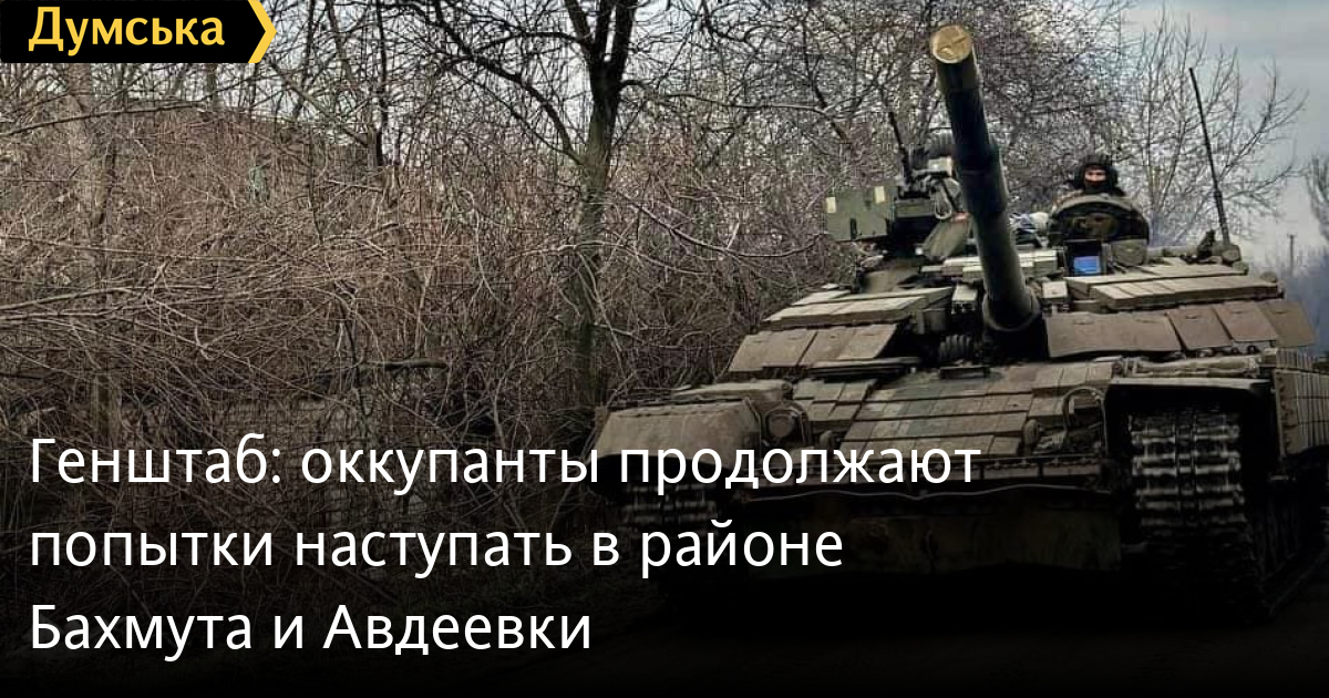 Генштаб: оккупанты продолжают попытки наступать в районе Бахмута и АвдеевкиНаступательные действия российских оккупантов ограничиваются бахмутским и авдеевским направлениях, в районе Лимана они пытаются улучшить свое тактическое положение, а на других направлениях – обороняются. Об этом сообщается в вечерней сводке оперативной обстановки, подготовленной Генеральным штабом Вооруженных сил Украины. В течение дня противник нанес два ракетных и два авиационных удара, более десяти раз использовал реактивные системы залпового огня. Украинская авиация четыре раза ударила по вражеским позициям, артиллеристы и ракетные подразделения поразили два пункта управления вражескими подразделениями, два района сосредоточения живой силы и техники оккупантов и склад боеприпасов. Подтверждено уничтожение в предыдущие дни комплекса С-300, еще восьми единиц военной техники и склада боеприпасов в Запорожской области. Более 150 рашистов получили ранения. СМЕРТЬ РОСІЙСЬКИМ ОКУПАНТАМ! Помітили помилку? Виділяйте слова з помилкою та натискайте control-enter |