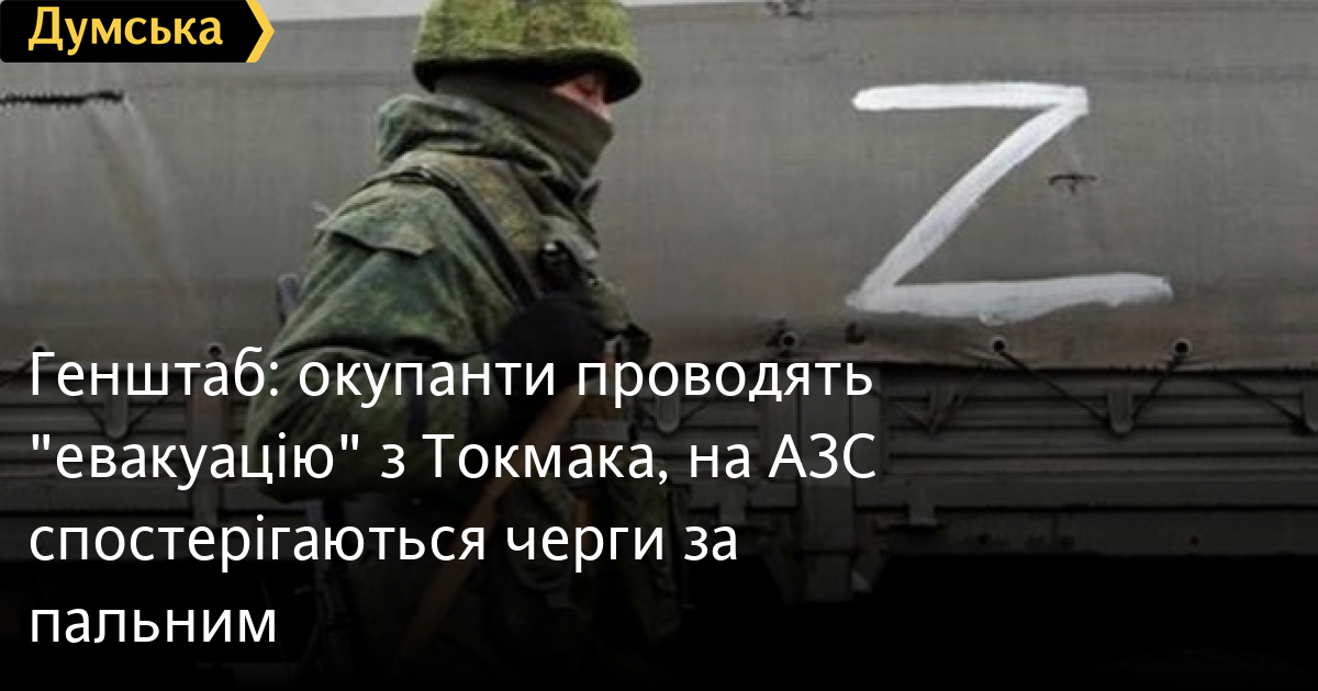 Так звану евакуацію місцевих жителів з тимчасово окупованого Токмака Запорізької області у напрямку населеного пункту Бердянськ проводять російські окупанти.