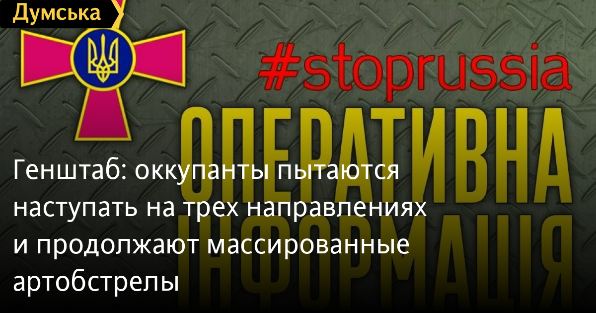 Генштаб: окупанти намагаються наступати на трьох напрямках та продовжують масовані артобстрілиРосійські нацисти 1 листопада продовжили спроби наступати на бахмутському, авдіївському та новопавлівському напрямках. Як повідомили у Генеральному штабі Збройних сил України, за добу окупанти завдали чотирьох ракетних та 26 авіаційних ударів, здійснили понад 27 обстрілів із реактивних систем залпового вогню. Під обстріл потрапили понад 20 населених пунктів, у тому числі Микільське у Запорізькій області, Полтава, Краматорськ, Нікополь та Миколаїв. У відповідь наша авіація протягом дня завдала 22 ударів по ворожих позиціях. Уражено 19 районів зосередження живої сили та техніки окупантів, три позиції ППО. Українська ППО збила два безпілотники типу «Орлан-10» та шість «шахідів». Ракетні війська та артилерія вразили два райони зосередження ворожих сил, склад боєприпасів та чотири інші важливі військові об'єкти. СМЕРТЬ РОСІЙСЬКИМ ОКУПАНТАМ! Помітили помилку? Виділяйте слова з помилкою та натискайте control-enter |