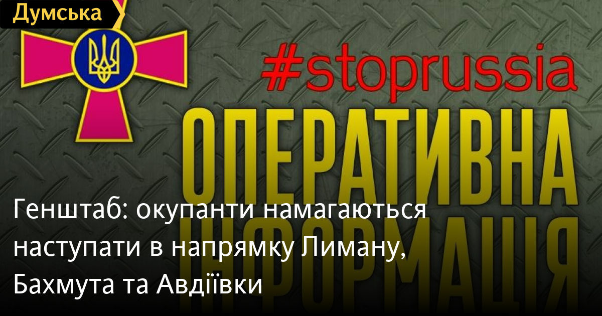 Російські війська продовжують спроби наступати на лиманському, бахмутському та авдіївському напрямках. У районі Куп'янська окупанти намагаються покращити свої тактичні позиції. На новопавлівському, запорізькому та херсонському напрямках ворог обороняється.