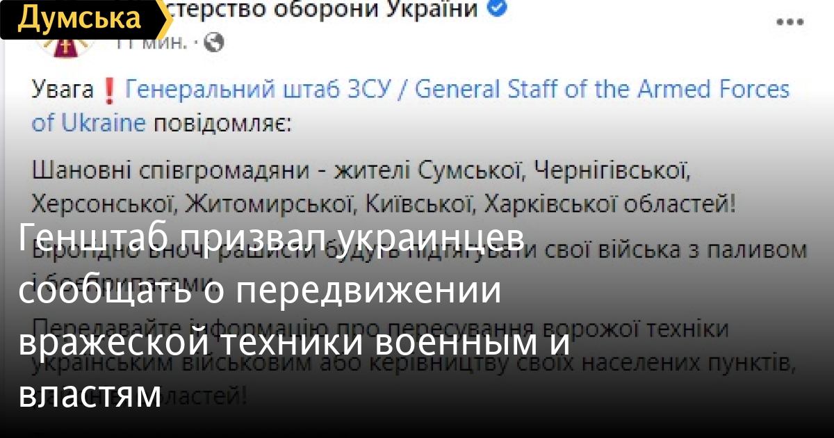 Генштаб призвал украинцев сообщать о передвижении вражеской техники военным и властямГенеральный штаб ВСУ обратился к жителям Сумской, Черниговской, Херсонской, Житомирской, Киевской и Харьковской областей. «Вероятно ночью рашисты будут подтягивать свои войска с топливом и боеприпасами. Передавайте информацию о передвижении вражеской техники украинским военным или руководству своих населенных пунктов, районов, областей», — сказано в сообщении. СМЕРТЬ РОССИЙСКИМ ОККУПАНТАМ! Заметили ошибку? Выделяйте слова с ошибкой и нажимайте control-enter |