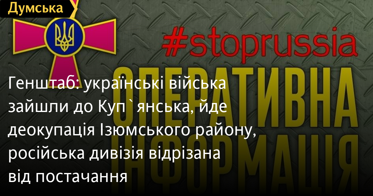 Генеральний штаб Збройних сил України за кілька днів після початку контрнаступу в Харківській області підтвердив, що українські війська зайшли до Куп'янська.