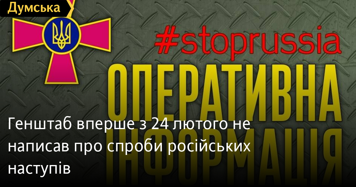 Генеральний штаб Збройних сил України вперше з початку повномасштабної війни опублікував зведення оперативної обстановки, в якому немає жодної згадки про вдалі чи невдалі наступи противника.