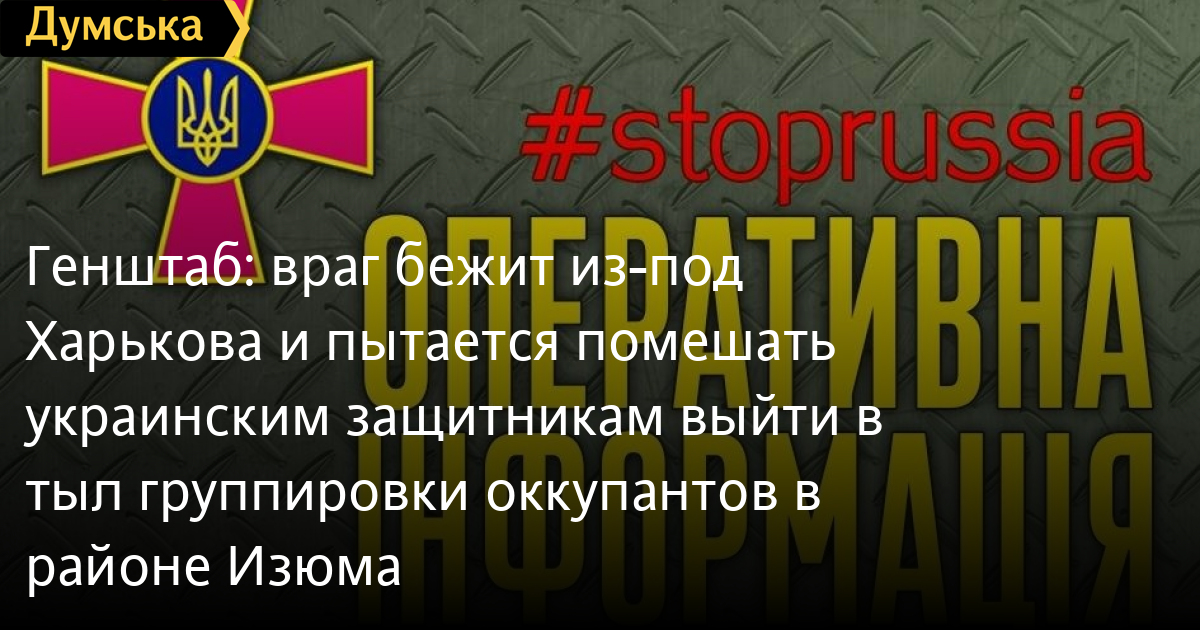 Вместе с тем, на слобожанском направлении противник обеспечивает уход собственных подразделений от Харькова. Также враг пытается не допустить выход подразделений Сил обороны в тыл российской группировки войск, сосредоточенной в районе Изюма.