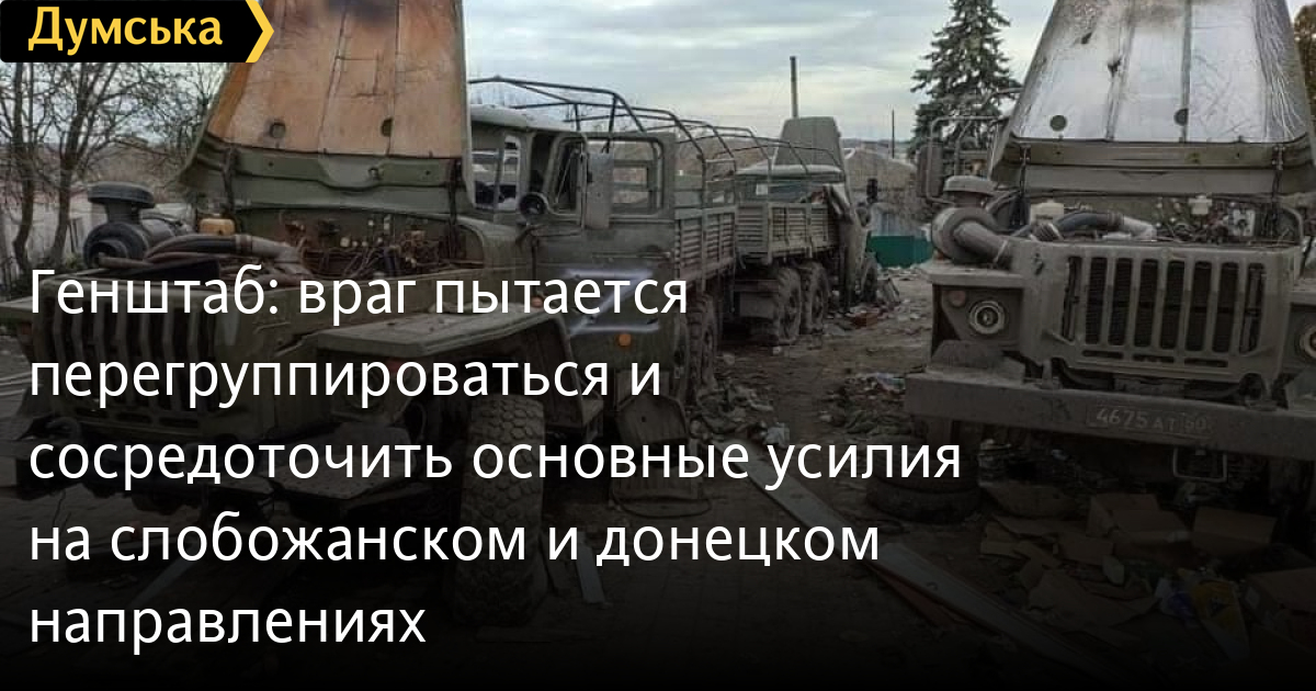 На слобожанском направлении враг продолжает блокировать Харьков. Противник отвел отдельные подразделения 1-й танковой армии из района Сум за пределы Украины. Российские нацисты продолжают перегруппировку войск, чтобы перекинуть их на другие направления. Оккупанты усилили наступательные возможности группировки отдельными подразделениями из состава 20-й общевойсковой армии западного военного округа в направлении Славянск.