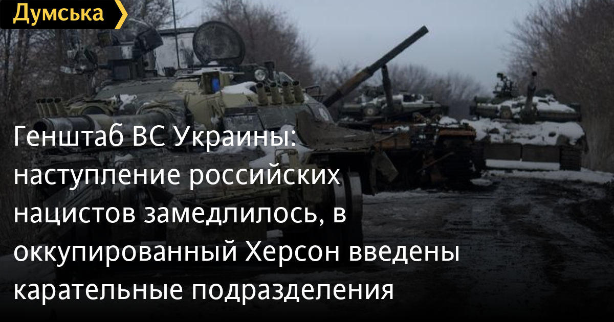Командование сообщает, что вражеское наступление существенно замедлилось. Оккупанты деморализованы, в их рядах наблюдается массовое дезертирство.