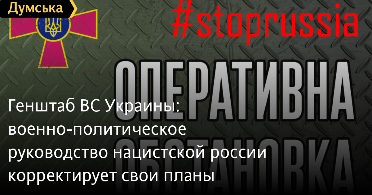 Генштаб ВС Украины: военно-политическое руководство нацистской россии корректирует свои планыГенеральный штаб Вооруженных сил Украины обнародовал сводку о ситуации на фронтах российско-украинской войны по состоянию на 12:00. Идут 29 сутки героического противостояния украинского народа российскому военному вторжению. Враг несет существенные потери. Военно-политическим руководством рф принято решение о корректировке планов по ведению дальнейших боевых действий на территории Украины в связи с тем, что цели, поставленные перед началом войны с Украиной, не были выполнены в установленные сроки. Согласно имеющейся информации, российское военное руководство осознает недостаточность имеющихся сил и средств удержания временно оккупированных ими территорий и ведения боевых действий. С целью восстановления боеспособности принят ряд решений о снятии с хранения и направлении в воинские части устаревшей бронетехники. В частности, в настоящее время осуществляется переброска на территорию Беларуси и временно оккупированного Крыма вооружения и военной техники для реализации попытки наступления и окружения Киева. В то же время подразделения вооруженных сил республики Беларусь продолжают привлекаться к прикрытию отдельных участков белорусско-украинской границы. Для пополнения потерь российские захватчики совершают призыв офицеров запаса, лиц рядового и сержантского состава из числа военнообязанных. Сохраняется практика привлечения наемников, набор которых осуществляют российские ЧВК. На временно занятых врагом территориях фиксируются многочисленные случаи изъятия грузовых автомобилей и специальной сельскохозяйственной техники у частных предпринимателей и фермеров. Наступательные действия противник вел только на донецком направлении. Относительно Харькова основные усилия российских оккупантов были сосредоточены на разрушении гражданской инфраструктуры. На изюмском направлении противник понес потери и отступил в район южной части города. Подразделения противника продолжают блокировать Чернигов и Сумы. Однако не могут захватить Славутич. На волынском, полесском, северском направлениях враг осуществляет перегруппировку войск. На южнобужском направлении противник занимает оборону, восстанавливает боеспособность с целью подготовки к возобновлению наступательных действий. Подразделения Вооруженных сил Украины нанесли удар по большим десантным кораблям рф, которые находились в порту временно оккупированного Бердянска. В результате вспыхнул пожар на большом десантном корабле проекта 1171 с дальнейшей детонацией боекомплекта. Потери противника уточняются. СМЕРТЬ РОССИЙСКИМ ОККУПАНТАМ! Заметили ошибку? Выделяйте слова с ошибкой и нажимайте control-enter |