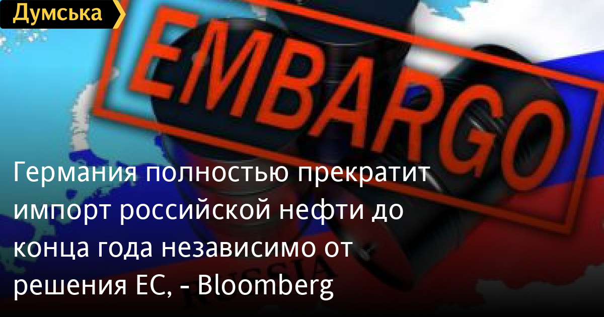 Германия планирует прекратить импорт российской нефти к концу года, даже если ЕС не удастся договориться об общеевропейском запрете в следующем пакете санкций.