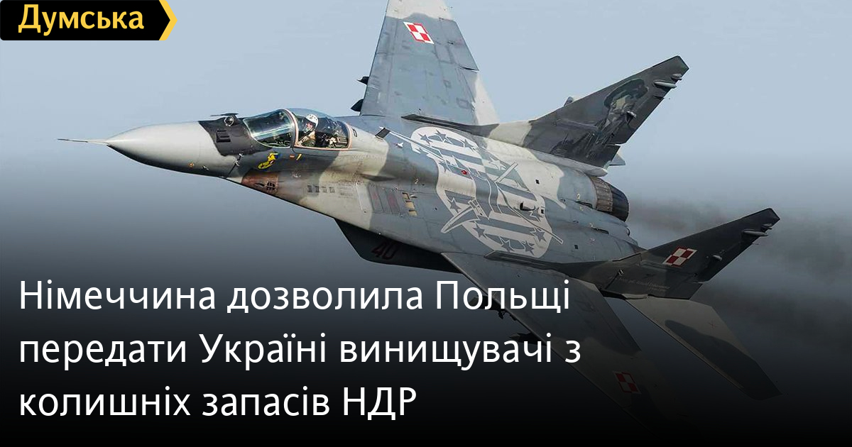 Німеччина дозволила Польщі передати Україні винищувачі з колишніх запасів НДРФедеральний уряд Німеччини схвалив запит Польщі про передачу Україні винищувачів МіГ-29, які колись перебували на озброєнні соціалістичної Німецької Демократичної Республіки. Наразі в Польщі перебуває 29 колишніх НДРівських МіГів, які країна купила у Німеччини у 2002 році. Близько десяти цих літаків у строю польських ВПС. Раніше президент Польщі Анджей Дуда заявив про намір поставити в Україну 14 МіГ-29, чотири з яких уже перебувають у нашій країні. Решту, за його словами, буде передано найближчим часом. Судячи з усього, практика передачі літаків цього типу буде продовжена. СМЕРТЬ РОСІЙСЬКИМ ОКУПАНТАМ! Помітили помилку? Виділяйте слова з помилкою та натискайте control-enter |