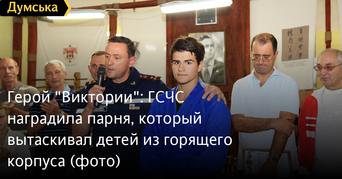 Официальная часть: поднятие флага, приветствия и напутствия. Все - как всегда. Но вот внезапно председатель клуба вызывает на татами черноволосого парня в синем кимоно, который скромно стоит у стены. Максим Тихончук — тот самый, который выносил спящих детей со второго этажа горящего корпуса №5 лагеря «Виктория». Видно, что парень очень стесняется. Появляется офицер ГСЧС, благодарит, вручает подарки. Подходят еще несколько «вручателей» — грамоты, книги и даже новенькое кимоно. Герой смущен, слава обрушилась на него неожиданно.