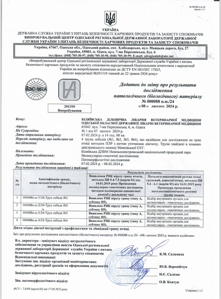 Масова загибель лебедів у природному парку Одеської області: встановлено причинуПричиною загибелі лебедів на території Нижньодністровського національного природного парку в Одеській області став пташиний грип. Вірус виявило лабораторне дослідження, після чого у Білгород-Дністровській районній військовій адміністрації відбулося засідання протиепізоотичної комісії, розповіли в адміністрації парку. «На жаль, у результаті досліджень виявили РНК вірусу грипу (типу А, субтипу Н5). Отже, комісія вирішила оголосити територію Нижньодністровського НПП за географічними координатами: 46.379313, 30. 242528 неблагополучною щодо грипу птиці та запровадити карантинні обмеження», — ідеться в повідомленні. Також визначено буферну зону, територію радіусом 3 км від неблагополучного пункту і зону спостереження радіусом 10 км, до якої входять села Маяки і Надлиманське та місто Біляївка. На території Нижньодністровського НПП будуть проводитися систематичні обстеження різними службами і необхідні ветеринарно-санітарні заходи. Як ми раніше писали, останнім часом у пониззі Дністра почастішали випадки загибелі лебедів. Трупи птахів виявили жителі сусідніх населених пунктів і співробітники природного парку. Помітили помилку? Виділяйте слова з помилкою та натискайте control-enter |