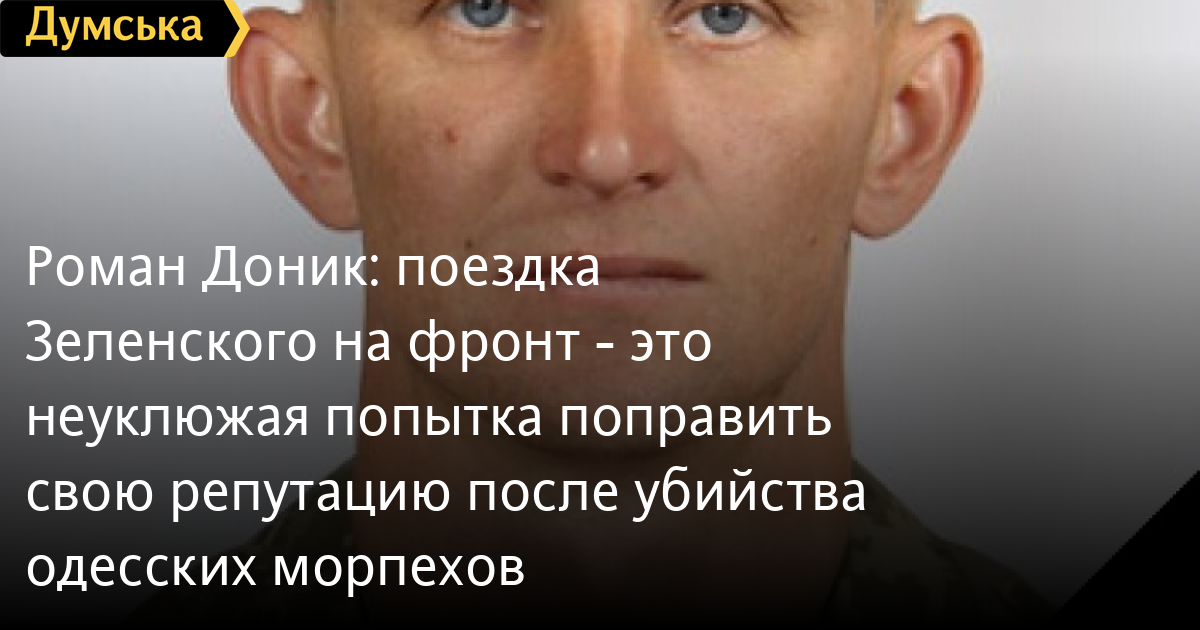 «Поездка президента к морпехам — это попытка «загладить вину» и реабилитироваться в глазах общества. Но поскольку этим занимаются комедийные актеры, то все больше походит на комедию. Даже посты действующих военнослужащих, написанных под диктовку Офиса президента. Просто не воевавшие люди, дающие тексты, не знают, что тяжелая артиллерия противника не работает по нашим позициям, которые находятся в сотнях метров от позиций противника. А на позициях, где якобы побывал Зеленский, — именно такие дистанции. Но звучит круто. В общем «держава в смартфоне», видосики «наше все». И ничего общего с реальностью. Между тем, у погибшего Ярослава Журавля осталось две дочки», — резюмирует Роман Доник.