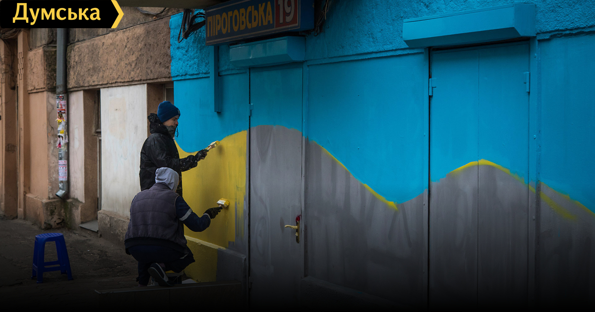 Украинский — защищает: любящий Россию одесский депутат раскрасил фасад своего офиса в цвета государственного флага (фотофакт)