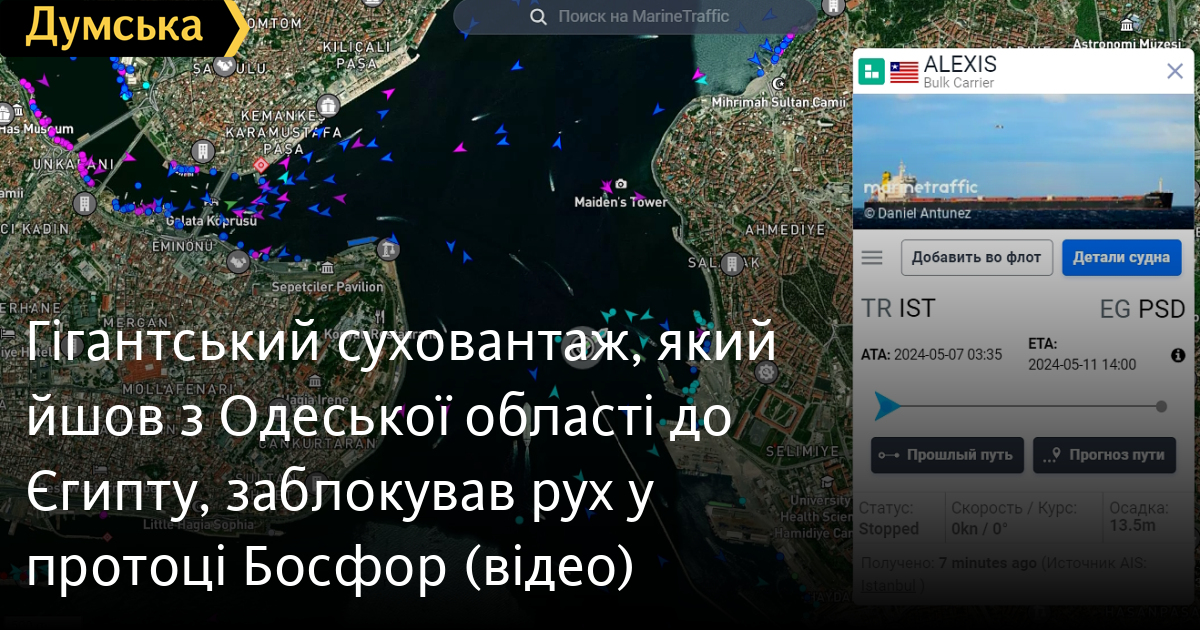 Гігантський суховантаж, який йшов з Одеської області до Єгипту, заблокував рух у протоці Босфор (відео)На мілину в протоці Босфор сів балкер ALEXIS під прапором Ліберії (IMO 9609158) рано-вранці 7 травня. За повідомленням Головного управління безпеки в прибережних водах Туреччини, інцидент стався через несправність двигуна. Гігант, завдовжки 229 метрів і завширшки 32 метри, зупинився біля західних воріт протоки Босфор, рух суден перекрито в обох напрямках. Судно 28 квітня вийшло з українського порту Південний у єгипетський Порт-Саїд із вантажем зерна. Турецька влада заявила, що проводить рятувальну операцію — кілька буксирів намагаються відтягнути балкер у безпечне місце, щоб відновити рух у протоці. Помітили помилку? Виділяйте слова з помилкою та натискайте control-enter |