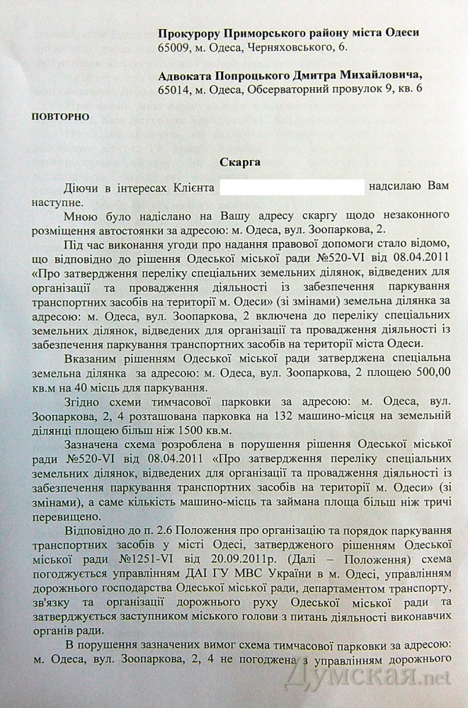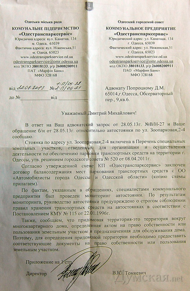 Жители одесского Фонтана пытаются «отвоевать» у незаконной парковки свою придомовую территориюЖильцы трех многоэтажных домов по Зоопарковой улице никак не могут избавиться от платной парковки, захватившей пешеходную зону и проезжую часть. Одесситы рассказывают, что буквально под их окнами ежедневно оставляют сотни автомобилей, причем только 5% из них принадлежат жильцам. Изначально балансодержатель парковки — руководитель организации «Автомобилисты г. Одессы и Одесской области» Сергей Кушнир (депутат горсовета от партии «Родина», ранее уже участвовавший в аналогичных конфликтах) – согласовал размещение парковки со всеми компетентными органами, в том числе с Госавтоинспекцией. Когда жильцы пожаловались на нарушения при эксплуатации территории, проверяющие ГАИ выехали на место, после чего сразу отозвали согласование, а КП «Одестранспарксервис» рекомендовали ликвидировать эту парковку. От правоохранителей жильцы узнали, что городской совет выделил под стоянку участок в 500 квадратных метров, рассчитанный на 40 машиномест, именно такие параметры были указаны при согласовании. Договор об обслуживании парковки был подписан в феврале этого года. На деле же здесь размещают более 200 авто, захватив площадь в четыре раза превышающую заявленную, в том числе кусок проезжей части. В свою очередь директор коммунального предприятия Владислав Томкевич никаких нарушений не замечает и настаивает на том, что стоянка на Зоопарковой, 2-4 согласована всеми инстанциями. При этом чиновник оперирует схемой, утвержденной Светланой Кобылянской (ныне покойной) еще в бытность ее директором департамента транспорта. Этот документ, вопреки решению горсовета, предусматривает уже 132 машиноместа. «ОСМД наших домов считает, что на этом месте должна быть пешеходная часть со скамейками и фонарями, а не автомобильная стоянка», — говорит житель дома №2 Владислав. Жильцы также рассказывают, что в адрес наиболее активных противников парковки, рискнувших лично посетить «Одестрнаспарксервис», уже поступали угрозы. СМЕРТЬ РОСІЙСЬКИМ ОКУПАНТАМ! Помітили помилку? Виділяйте слова з помилкою та натискайте control-enter |