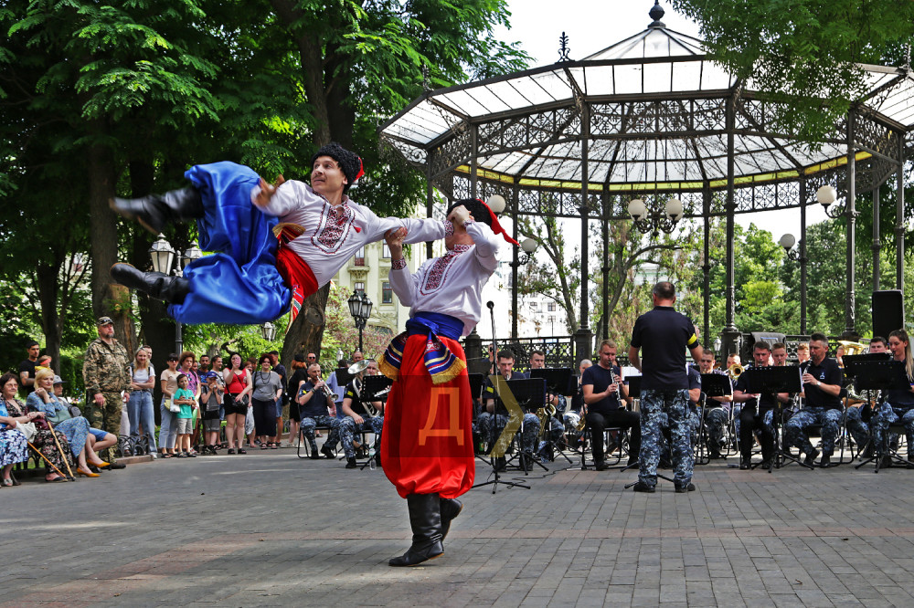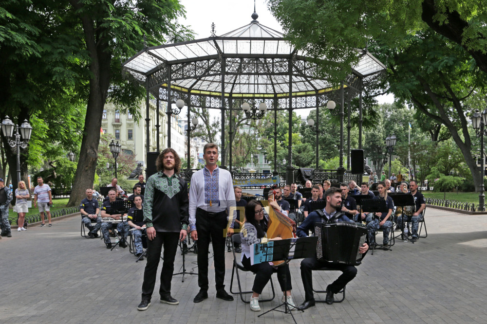 Двухчасовой концерт начался с гимна Украины, затем прозвучали военно-патриотические композиции, народные, фольклорные, попурри из одесских песен и танцевальные композиции Центра военно-музыкального искусства ВМСУ. А «гвоздем» программы стало исполнение оркестром всемирно известного хита украинской группы Kalush Orchestra — Stefania.