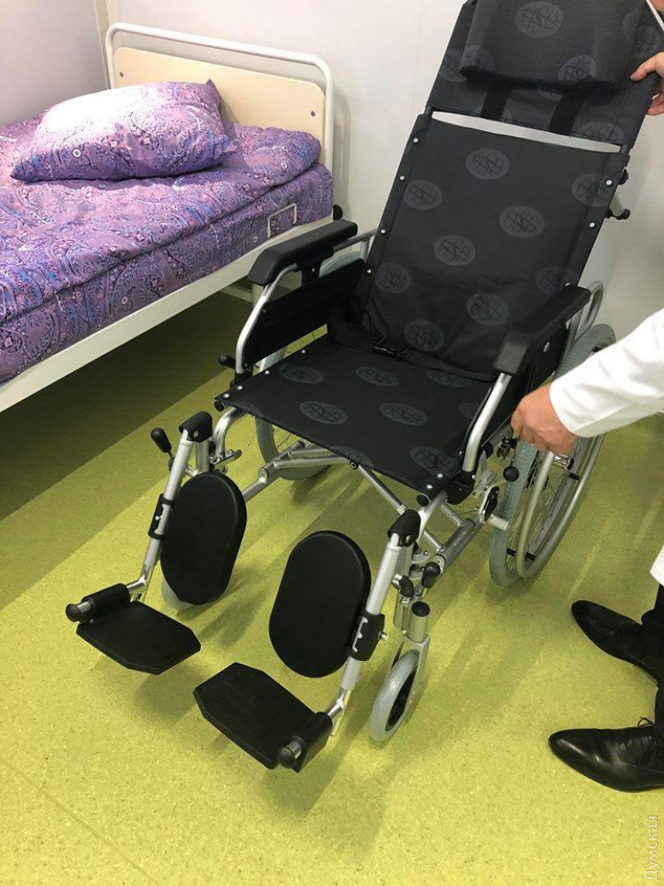 Для кабинета закупили многофункциональные смотровые кресла, которые регулируются по высоте и при необходимости могут трансформироваться в операционные столы. Палаты снабжены кнопками вызова персонала, оборудованы специальные поручни в санузлах и расширенные двери в помещениях, на входе в отделение имеется пандус.