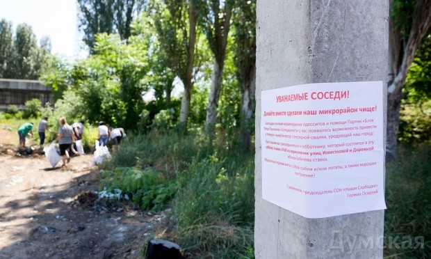 «Мы вывезли отсюда семь полных грузовиков мусора, но это только полдела, — говорит председатель Суворовской ячейки Блока Петра Порошенко «Солидарность» Константин Задоржный. – Ведь чисто не там где убирают, а там где не сорят. Мы помогли СОНу заключить договор с мусоровывозящей компанией и уже в ближайшее время тут появятся мусорные баки и цивилизованный сбор бытовых отходов».