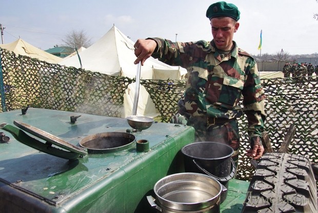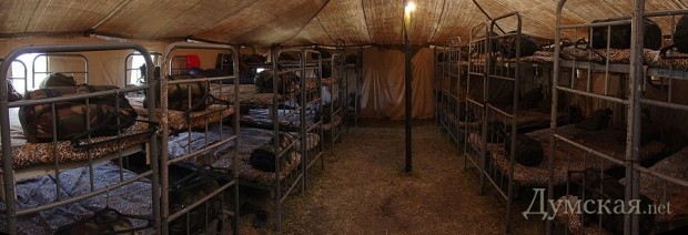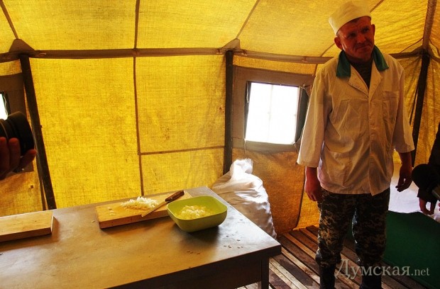 Палаточный городок, в котором роте мобилизованных предстоит прожить до середины лета, особого интереса не представляет. Палатки – такие же, как на Куликовом: внутри – буржуйка, а на двухэтажных кроватях – еще не распакованные спальные мешки. На импровизированном плацу между шатрами мужчины вспоминают премудрости хождения строем. Рядом – кухня, где стеснительный повар готовит на обед гороховый суп с рисом. Все по уставу до мозга костей.