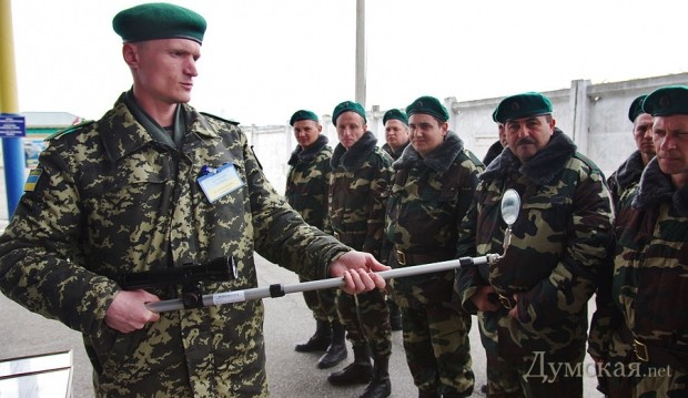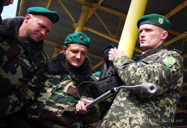 На улице, рядом со сквозным трафиком, второй взвод пытается «опанувать» всякие пограничные девайсы. Товарищ майор показывает с десяток инструментов странной геометрии, больше напоминающие арсенал стоматолога или проктолога.