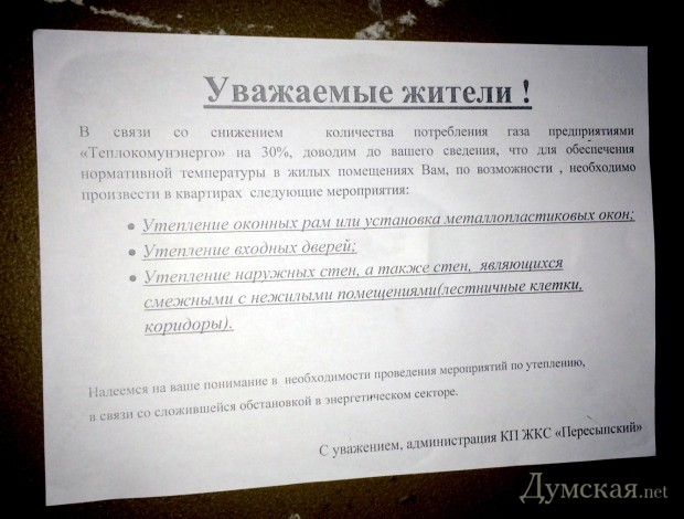 Недостаток газа никак на населении не скажется- так обещали. Теперь в Киеве «экономят», в Одессе призывают утепляться. Все обещания чиновников-пустое движение воздуха. Как всегда на коне банкиры и чины. Имея таких глистов, сыпь не вылечить.