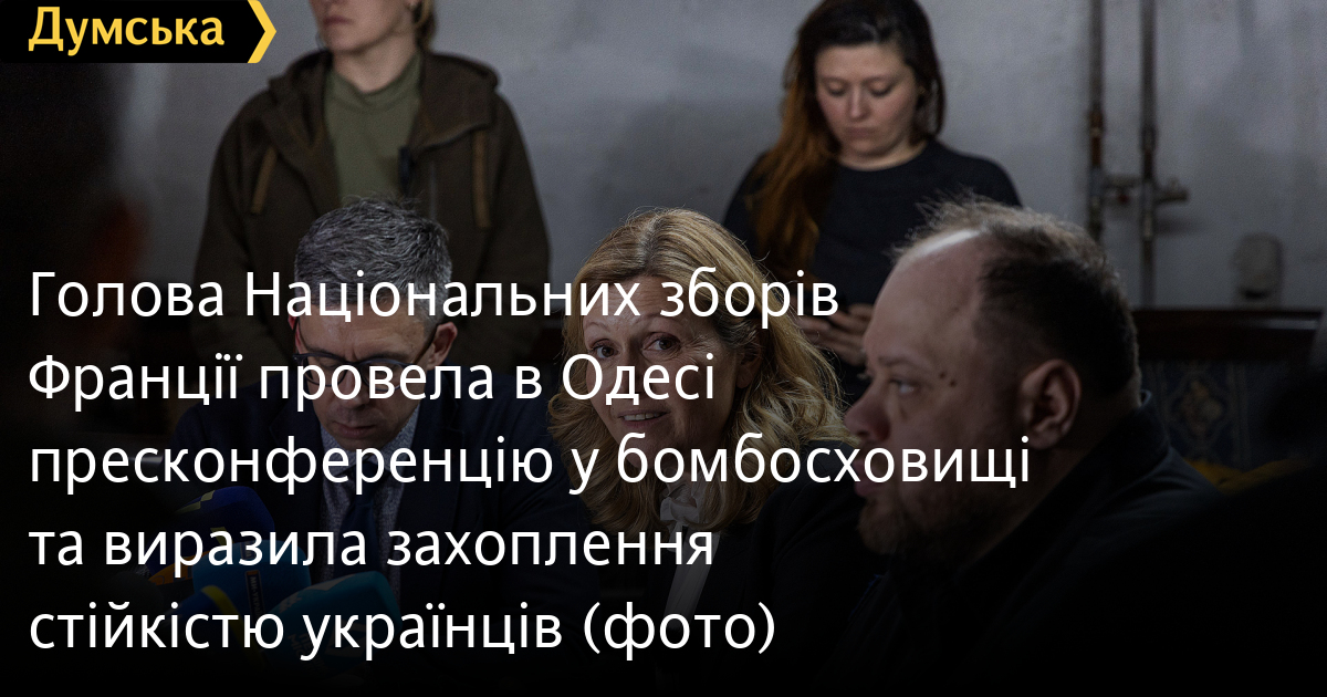 Голова Національних зборів Франції Яель Брон-Піве відвідала сьогодні Одесу. Наше місто стало кінцевою точкою триденного візиту, протягом якого французькій делегації довелося шість разів спускатися в різні укриття під час повітряної тривоги.
