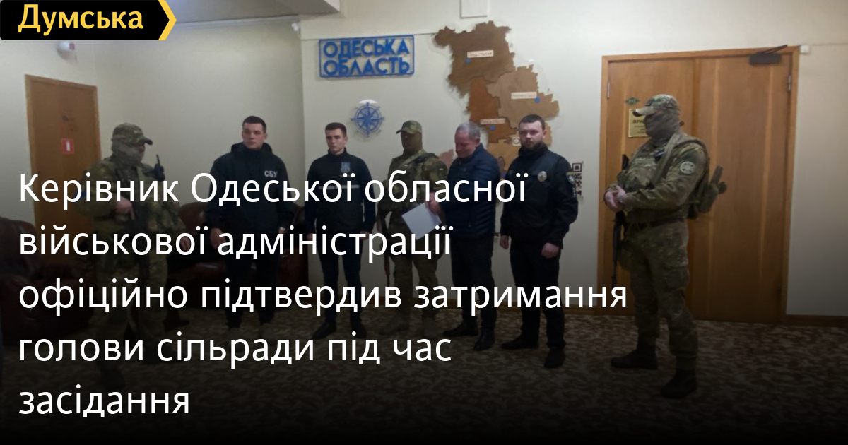 Керівник Одеської обласної військової адміністрації офіційно підтвердив затримання голови сільради під час засіданняЗатримання правоохоронцями голови сільради під час наради офіційно підтвердили в Одеській обласній військовій адміністрації. Про це повідомив губернатор Олег Кіпер. «Під час засідання робочої групи «Прозорість та підзвітність» дійсно відбулося затримання одного з голів ОТГ. Працювали співробітники СБУ під кримінально-процесуальним керівництвом прокуратури Одеської області. Вони нададуть усю детальну інформацію. Але наголошую, що Одеська ОВА постійно співпрацює з усіма правоохоронними органами. Власне, сьогоднішнє затримання це підтверджує», — зазначив він. Як раніше писала «Думська» з посиланням на власні джерела, ідеться про голову Мологівської громади Олега Німачука, якому інкримінують легалізацію злочинних доходів і привласнення майна. Правоохоронці перервали нараду і вивели підозрюваного для проведення слідчих дій. СМЕРТЬ РОСІЙСЬКИМ ОКУПАНТАМ! Помітили помилку? Виділяйте слова з помилкою та натискайте control-enter |