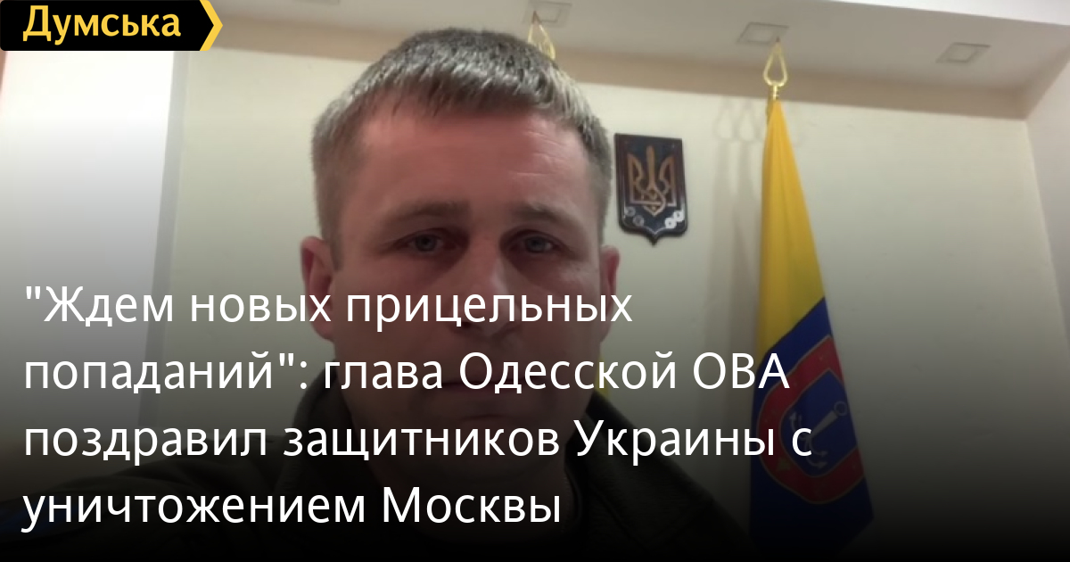 Глава Одесской ОВА Максим Марченко во время своего ежедневного обращения к жителям Одесской области поздравил Военно-морские силы Украины с прицельным попаданием в крейсер российских оккупантов «Москва».