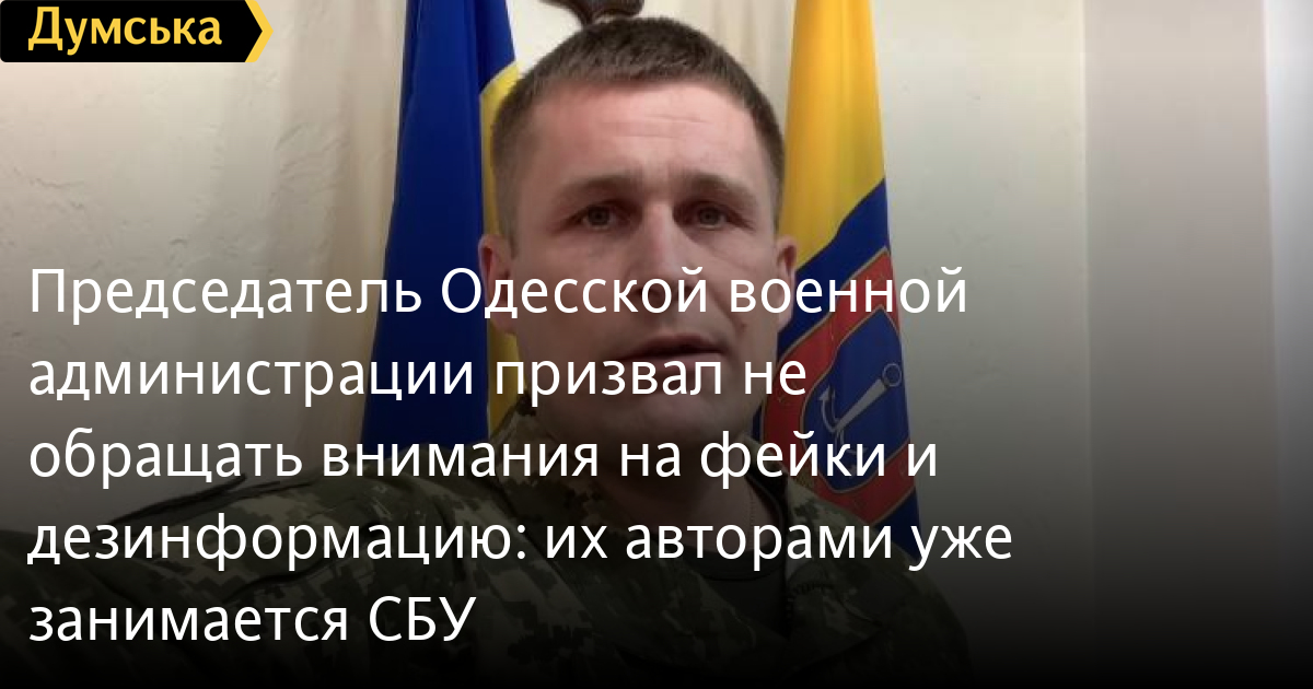 Председатель Одесской военной администрации призвал не обращать внимания на фейки и дезинформацию: их авторами уже занимается СБУНе обращать внимания на фейковые заявления и дезинформацию о ситуации с боевыми действиями призвал глава Одесской военной администрации Максим Марченко в своем видеообращении по итогам 13 марта. «Большинство таких заявлений, которые делаются с территории России, это информационно-психологические операции, — сообщил Марченко. — По моему распоряжению такими сообщениями и их авторами уже занимается Служба безопасности Украины». Также руководитель ОВА добавил, что день прошел без обстрелов и пожелал тихой ночи. СМЕРТЬ РОССИЙСКИМ ОККУПАНТАМ! Заметили ошибку? Выделяйте слова с ошибкой и нажимайте control-enter |