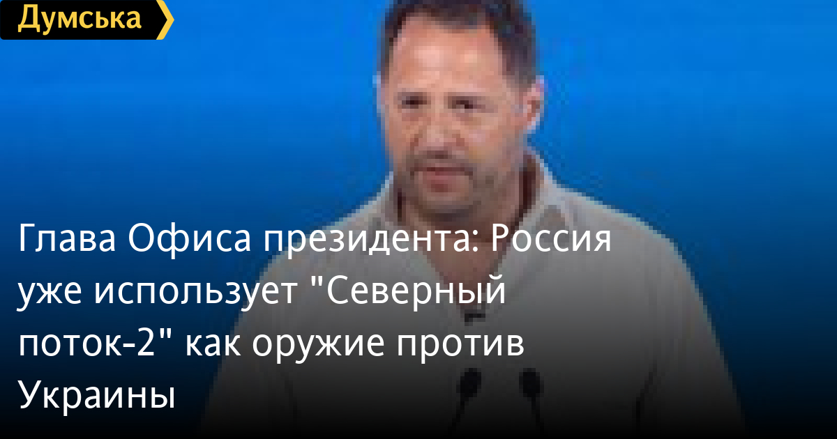 «Мы считаем, что уже сегодня можно говорить о том, что Россия начала использовать Nord Stream как оружие против Украины. Если имели возможность вчера увидеть цены, по данным биржи IC Future в ходе торгов цена октябрьского фьючерса на газ на индекс TTF превысила 700 долларов за тысячу кубометров на максимум, достигнув 57,25 евро за мегаватт/час», — сказал Ермак.