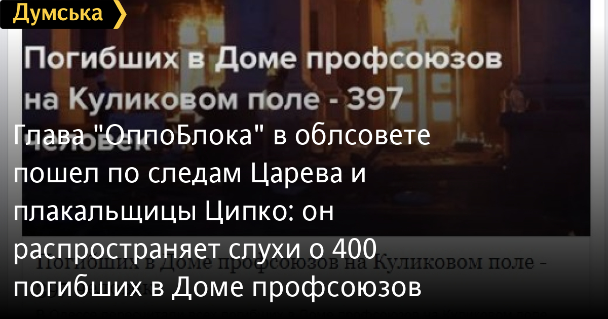 Так, «оппозиционер» распространяет информацию о том, что в результате одесской трагедии 2 мая 2014 года в Доме профсоюзов якобы погибло 397 человек.