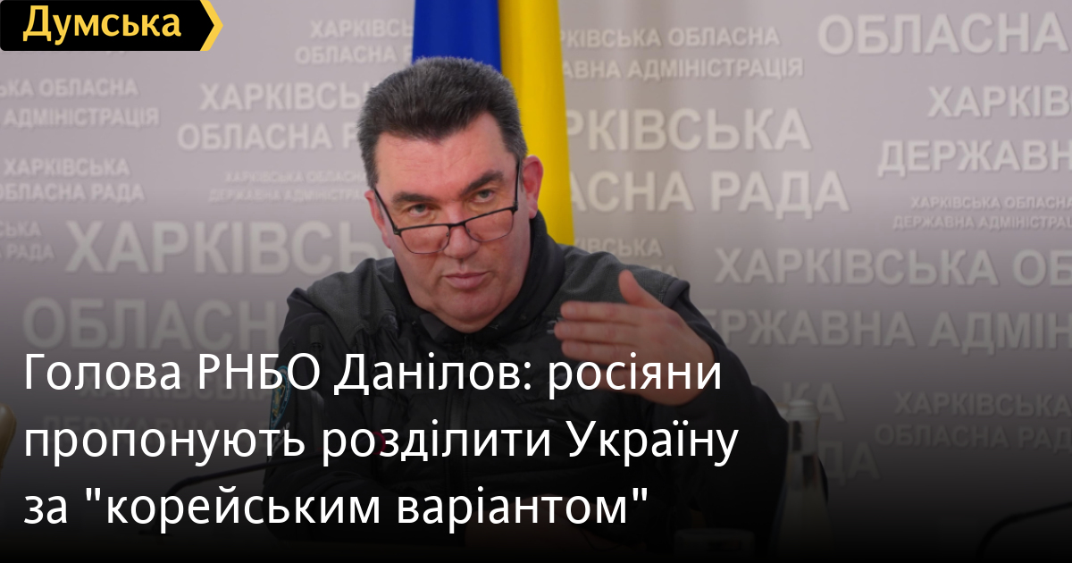 «Нам зараз пропонують корейський варіант. Так звана умовна «38 паралель». Ось тут такі українці, а тут не такі українці. Росіяни зараз будуть вигадувати все, що завгодно. Точно знаю, що один із варіантів, які вони можуть нам пропонувати — це «38 паралель».Але, нещодавно, спілкуючись із представниками Кореї, я звернув увагу Вони вважають, що тоді була велика помилка, що пішли на поступки, погодилися з тим, що треба заради збереження Сьогодні мають проблеми», — заявив Данілов.