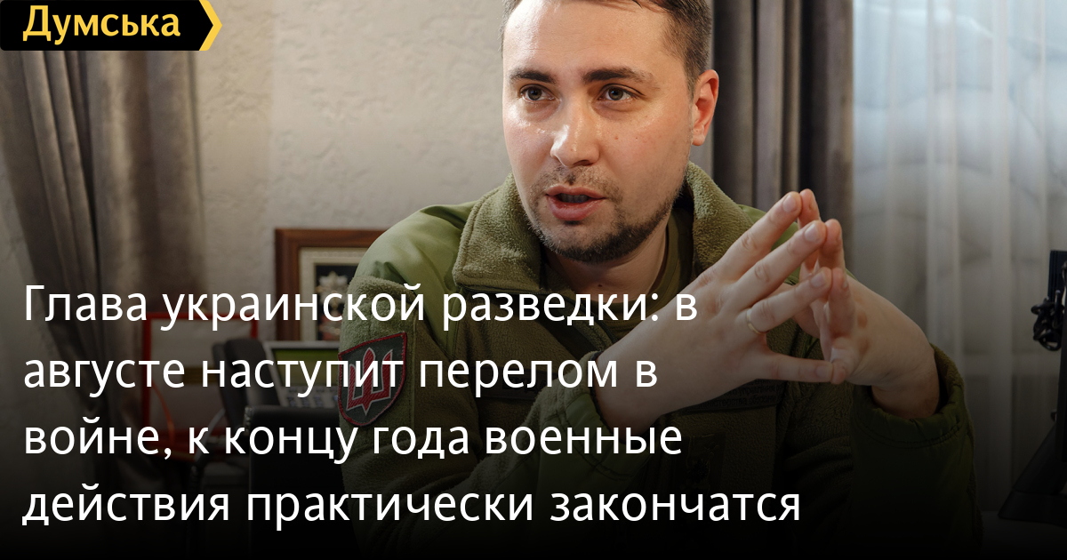 Начальник Главного управления разведки Министерства обороны Украины Кирилл Буданов уверен, что в августе украинские войска добьются коренного перелома в войне. К концу года, по его мнению, военные действия на территории Украины практически прекратятся.