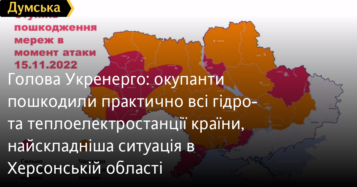 Практично всі великі теплові та гідроелектростанції України були пошкоджені внаслідок останньої ракетної атаки російських нацистів.