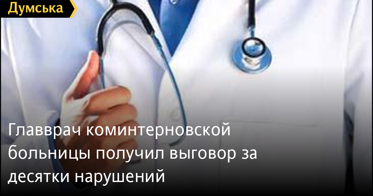 Депутаты райсовета наградили главврача Коминтерновской центральной районной больницы выговором. Причиной такого решения стало представление Коминтерновской прокуратуры по результатам проверки в указанном лечебном учреждении.