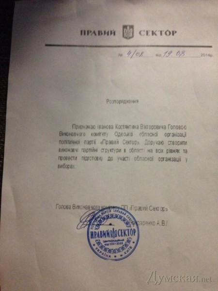 Одесский «Правый сектор» возглавил предприниматель и общественный деятель Константин Иванов.