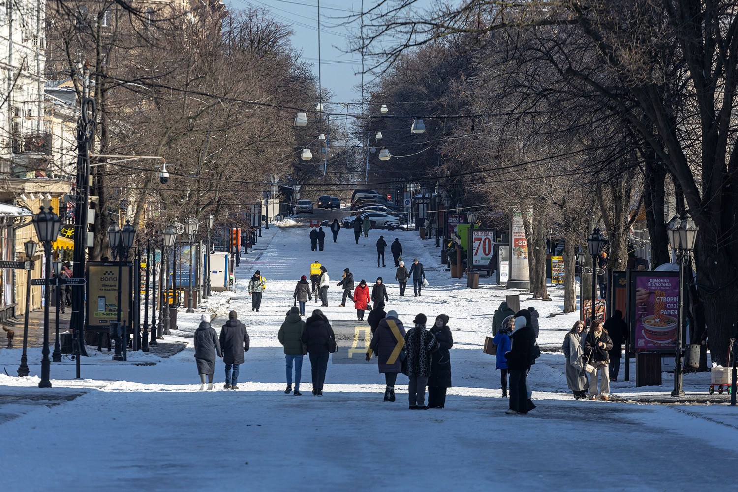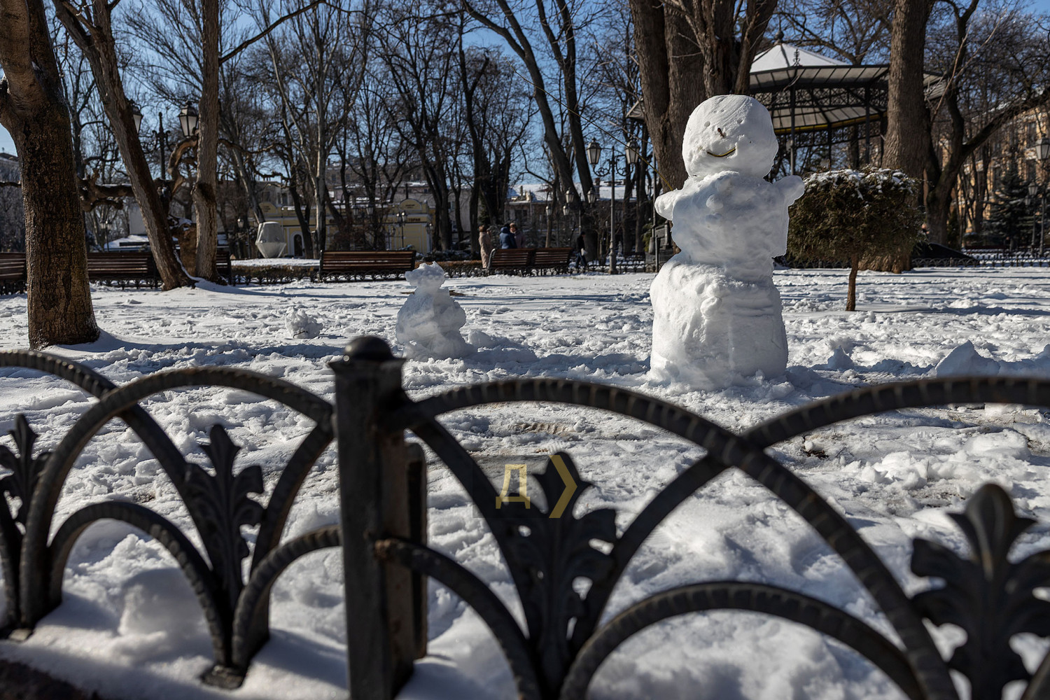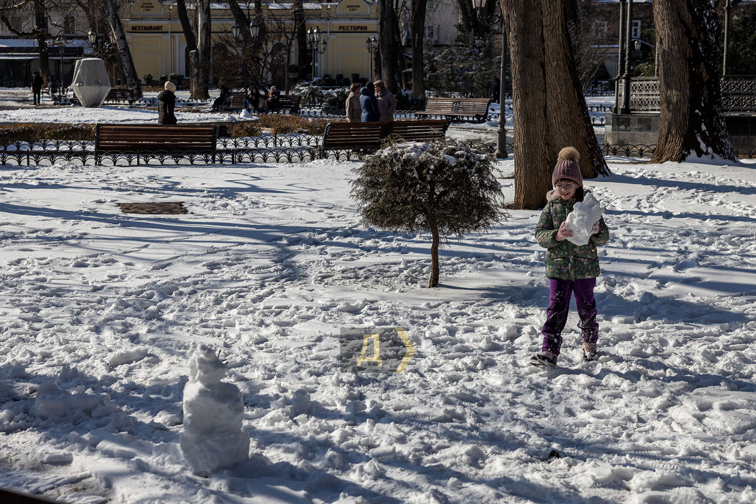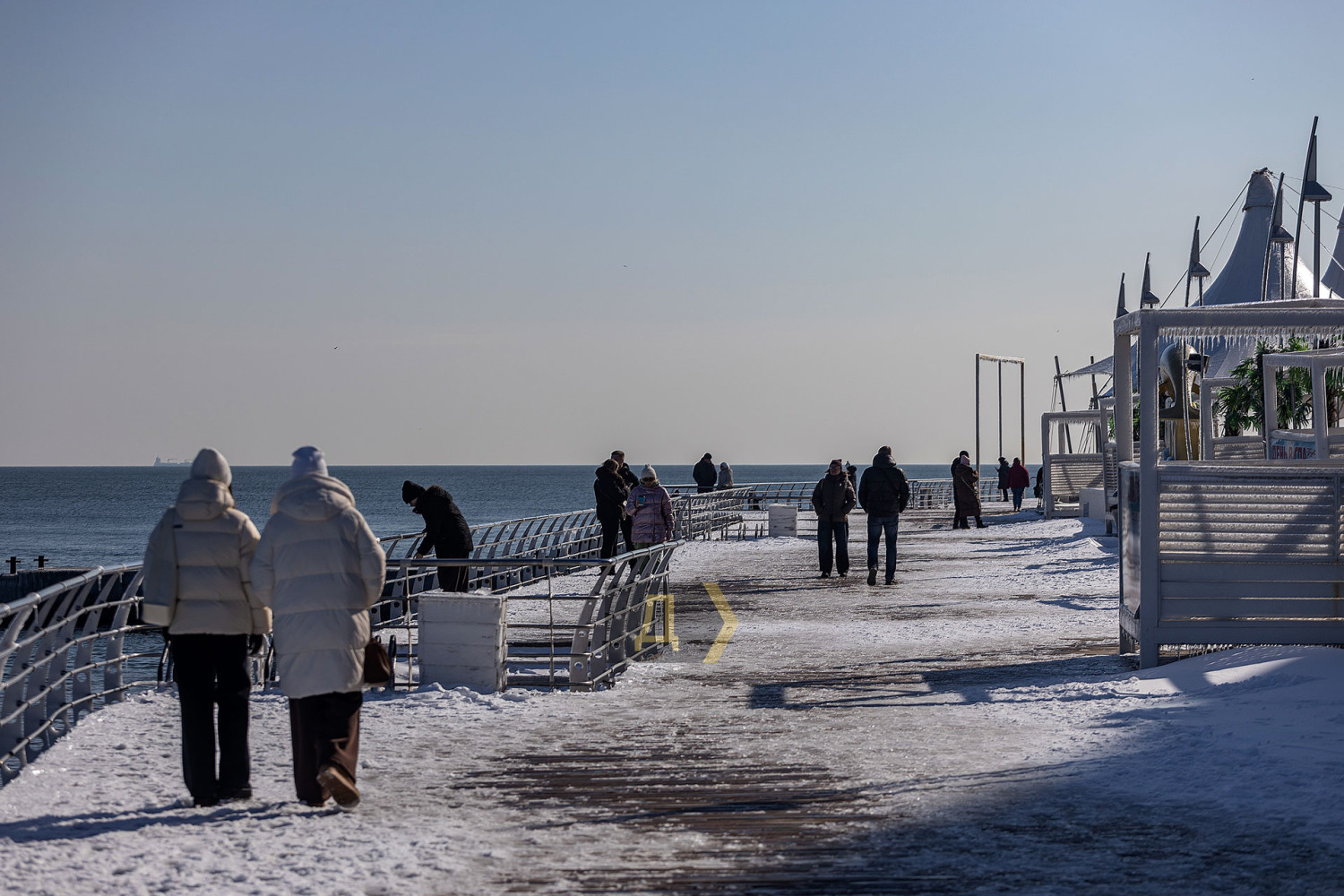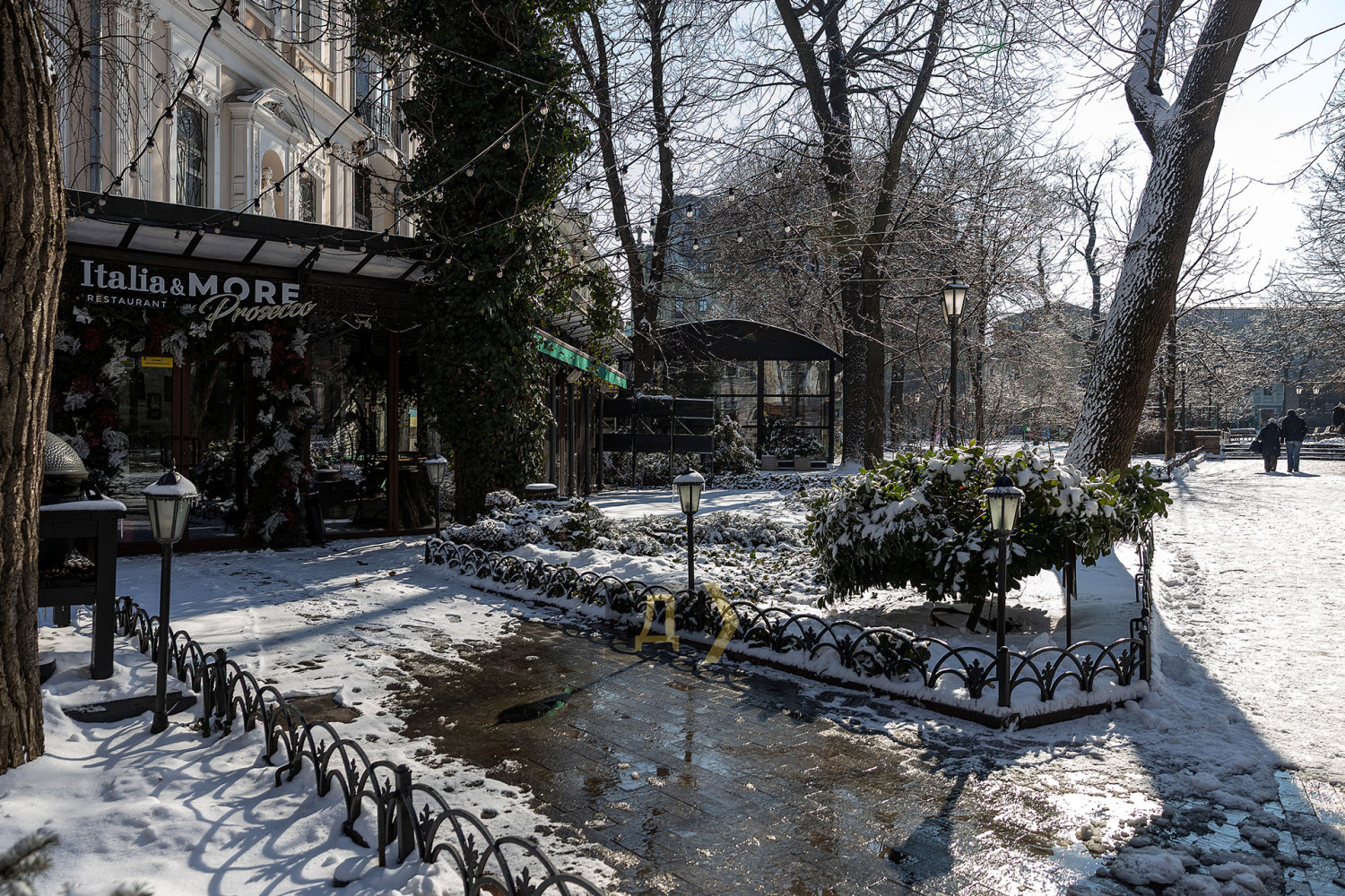 Одесса приходит в себя после снегопада, сковавшего город. Уже к обеду солнышко растопило ледяную корку, как на проезжей части, так и на тротуарах. На море практически штиль. Яркое солнце заливает пляж так, что больно смотреть. Блестящей ледяной глазурью покрыта каждая веточка. Даже арт-объект «Кот на фонаре» смотрится как леденец. Под лучами глазурь тает и с шумом осыпается на отдыхающих одесситов, которые спешат с Трассы здоровья на набережную дельфинария и пляжи. Пожалуй, единственная улица со снежным покровом — пешеходная Дерибасовская. Тут вчера явно не ездила крупная снегоуборочная техника. Оно и к лучшему. Здесь не скользко, красиво. Тропинки Горсада почищены, а вот на газонах радует глаз почти не тронутый снег. Детвора с удовольствием лепит снеговиков. СМЕРТЬ РОССИЙСКИМ ОККУПАНТАМ! Заметили ошибку? Выделяйте слова с ошибкой и нажимайте control-enter |