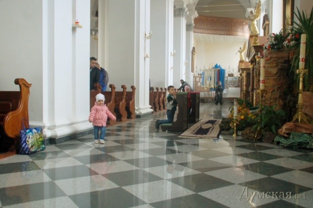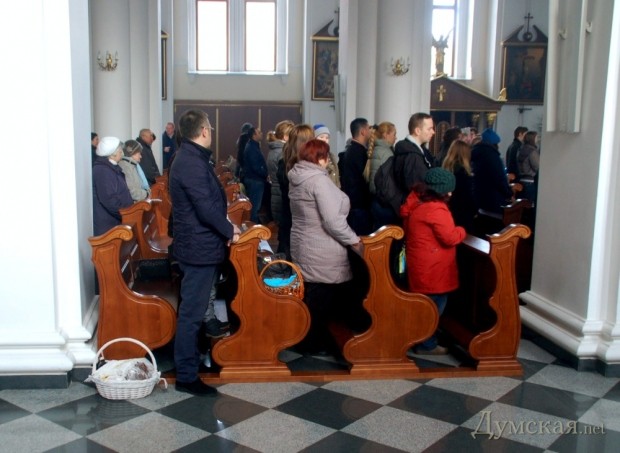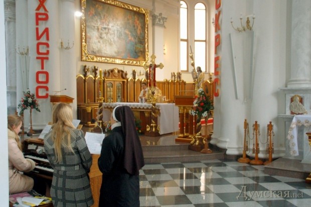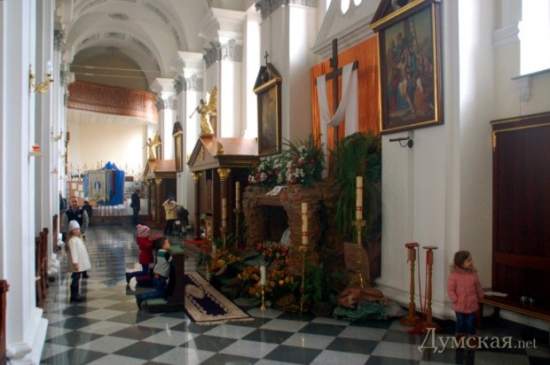 Католики собрались сегодня в кафедральном костеле Успения Пресвятой Девы Марии, что на Екатерининской улице, где состоялась праздничная месса. В величественном зале одесского храма звучали молитвы и древние гимны на польском, латинском и украинском языке. После службы было проведено традиционное освящение куличей, верующие дарили друг другу пасхальные яйца — как символ чудесного Воскресения.