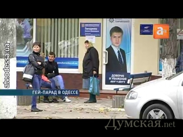 Телеканал АТВ, принадлежащий кандидату по 133-округу Игорю Маркову, показал сюжет о проведении в Одессе гей-парада в поддержку Алексея Гончаренко. Секретный гей-парад прошел по улицам Киевского района прямиком к приёмной кандидата Гончаренко — конкурента Маркова.