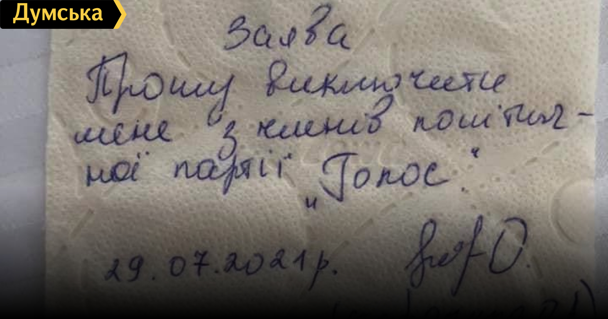 «Голос» разваливается: нардеп Стефанишина написала заявление о выходе из партии на клочке туалетной бумаги, ее примеру последовали коллегиФракция «Голос» продолжает распадаться. Как сообщила депутат от этой политсилы Ольга Стефанишина, партия должна была провести съезд, однако многих соратников вообще не позвали на это мероприятие. Вместо этого на собрании будут представлены только те, кто лоялен лидеру фракции в парламенте Кире Рудык. Как сообщила Стефанишина, большинство народных депутатов не будут принимать участия в этом съезде и выходят из партии. В частности, свое заявление депутат написала на клочке туалетной бумаги. «Большинство выдающихся сделок заключаются на салфетках, а такая – разве что на туалетной бумаге. Прошу исключить меня из членов политической партии «Голос»», — пишет Стефанишина. Она напомнила, что несколько месяцев назад 75% партийцев выступили с публичными заявлениями, требуя переизбрать руководство на прозрачных демократических внутрипартийных выборах, но этого не случилось. СМЕРТЬ РОСІЙСЬКИМ ОКУПАНТАМ! Помітили помилку? Виділяйте слова з помилкою та натискайте control-enter Новини по цій темі: 29 березня 2021: «Голос» раскололся: половина избранных от этой политсилы нардепов недовольны деятельностью руководства и требует его переизбрания 11 лютого 2021: Соцопрос: «Европейская Солидарность» вышла на первое место в рейтинге партий, а «Слуга народа» - лишь на третьей позиции 5 січня 2021: Соцопрос: рейтинг Зеленского и его партии снизился вдвое, но за него все равно проголосовали бы на президентских выборах |