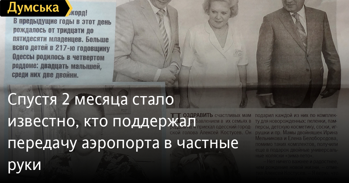Официальное издание городского совета — газета «Одесский вестник» — в сегодняшнем номере наконец-то опубликовала список депутатов, проголосовавших за передачу 75% имущественного комплекса одесского аэропорта в частную собственность. Напомним, что решение о публикации, которое иницировала фракция «Сильная Украина», было принято на той же сессии, еще два месяца назад.